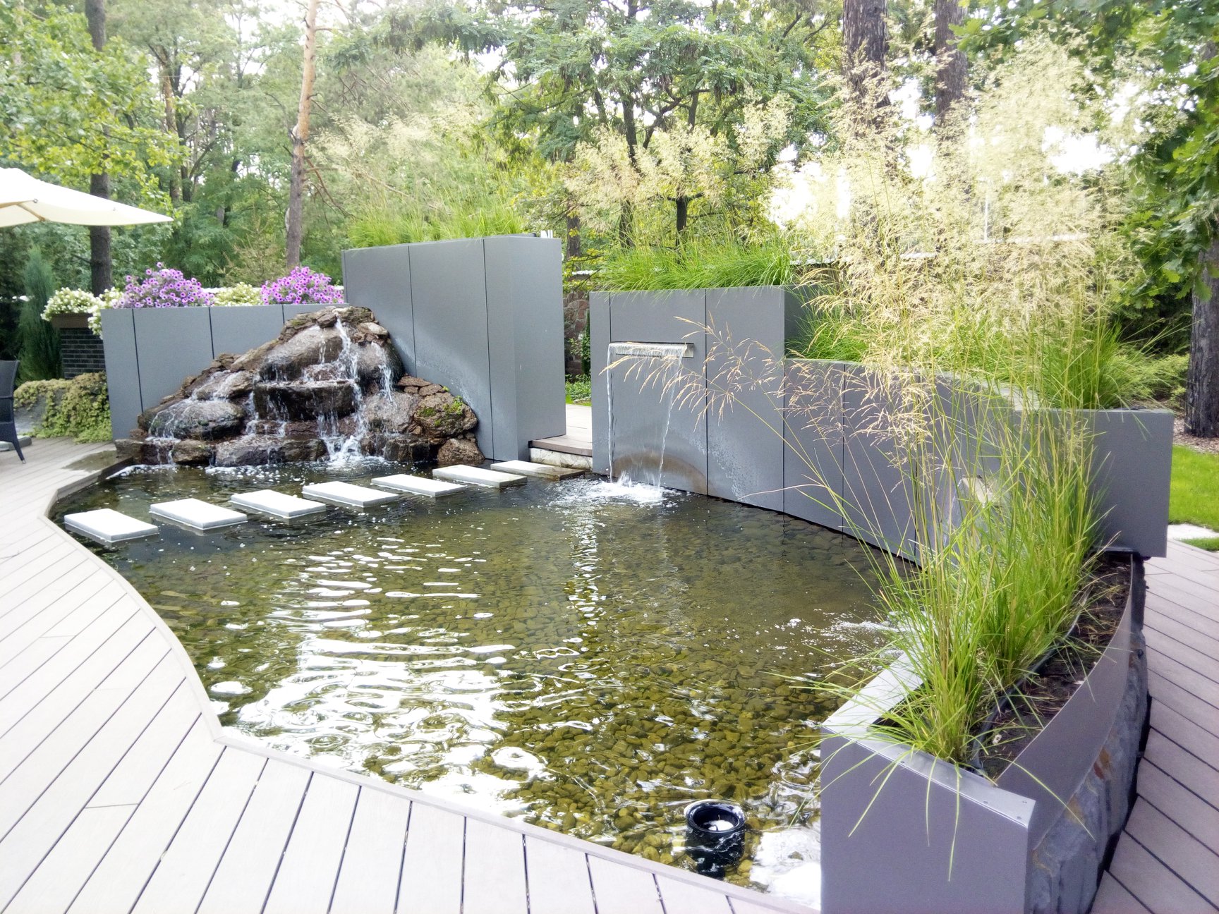 МС Ландшафт занимается устройством водяных участков. Мы предоставляем полный комплекс мероприятий, касающихся этого направления деятельности. Проектирование, выбор необходимых материалов и конструкций, создание бассейнов и водовместилищ, оснащение водой и другими услугами для оформления идеального декора для дачи, частного дома или любой области вокруг водной поверхности. Наше агентство предоставляет сервисы обустройства по выгодной стоимости, на которую влияет география места, стройматериалы, тип строительных мероприятий и их количество.
